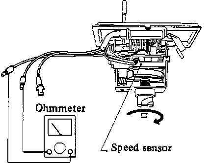 Turn speedometer slowly by hand. Check that continuity exists 2 times per revolution.