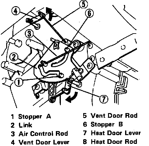 5. Open defroster door fully, then tighten clamp on defroster control rod located at end of heat door lever.