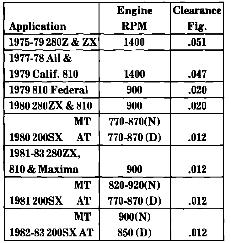 Fig. 87 Throttle valve switch adjustment specification chart: