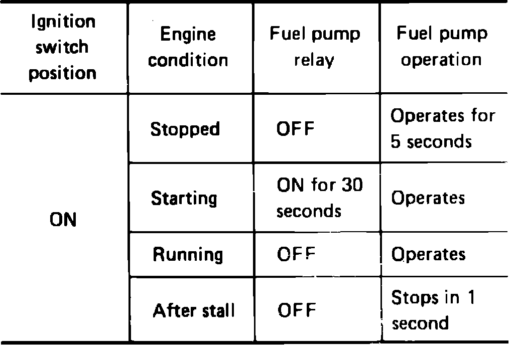 The electronic control unit adjusts fuel pump operation to engine operating conditions. The signals from various sensors and switches are used to control fuel pump operation.