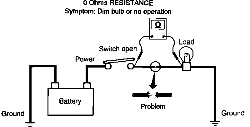 A voltage drop across closed contacts can indicate excessive resistance. This can cause the circuit to operate incorrectly. Remember, a switch is not a load. During diagnosis, use a voltmeter to measure the voltage drop across each switch contact while the circuit is in operation.