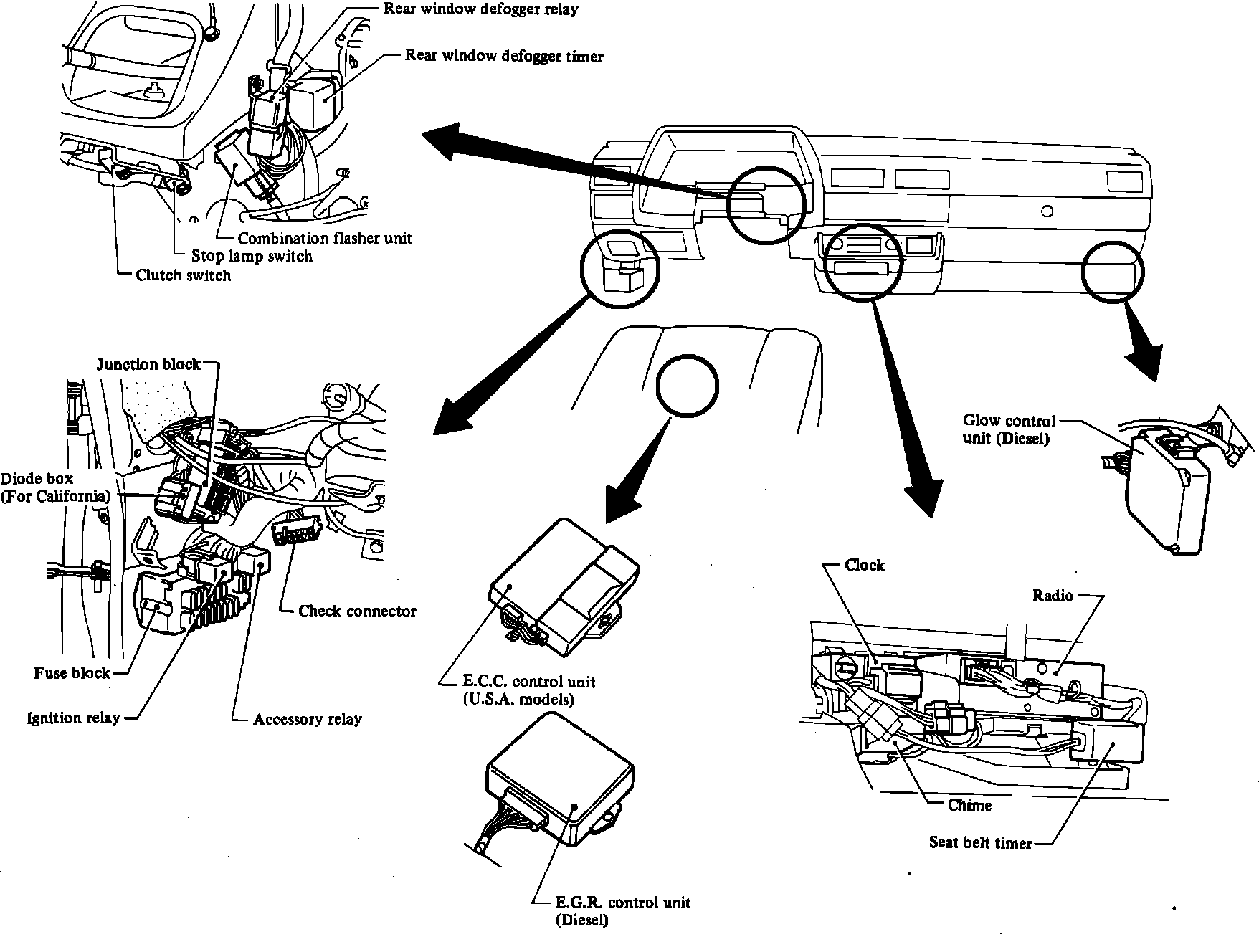 Fig. 186 Electrical Unit Locations (Passenger Compartment).: