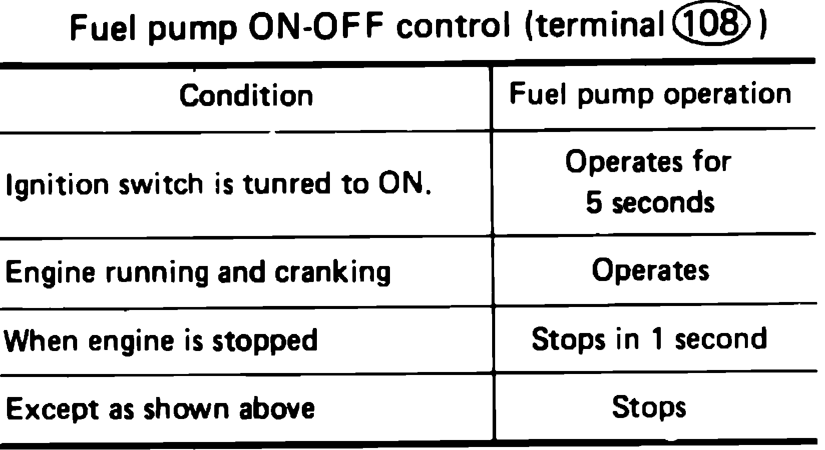The electronic control unit adjusts fuel pump operation to engine operating conditions. The signals from various sensors and switches are used to control fuel pump operation.