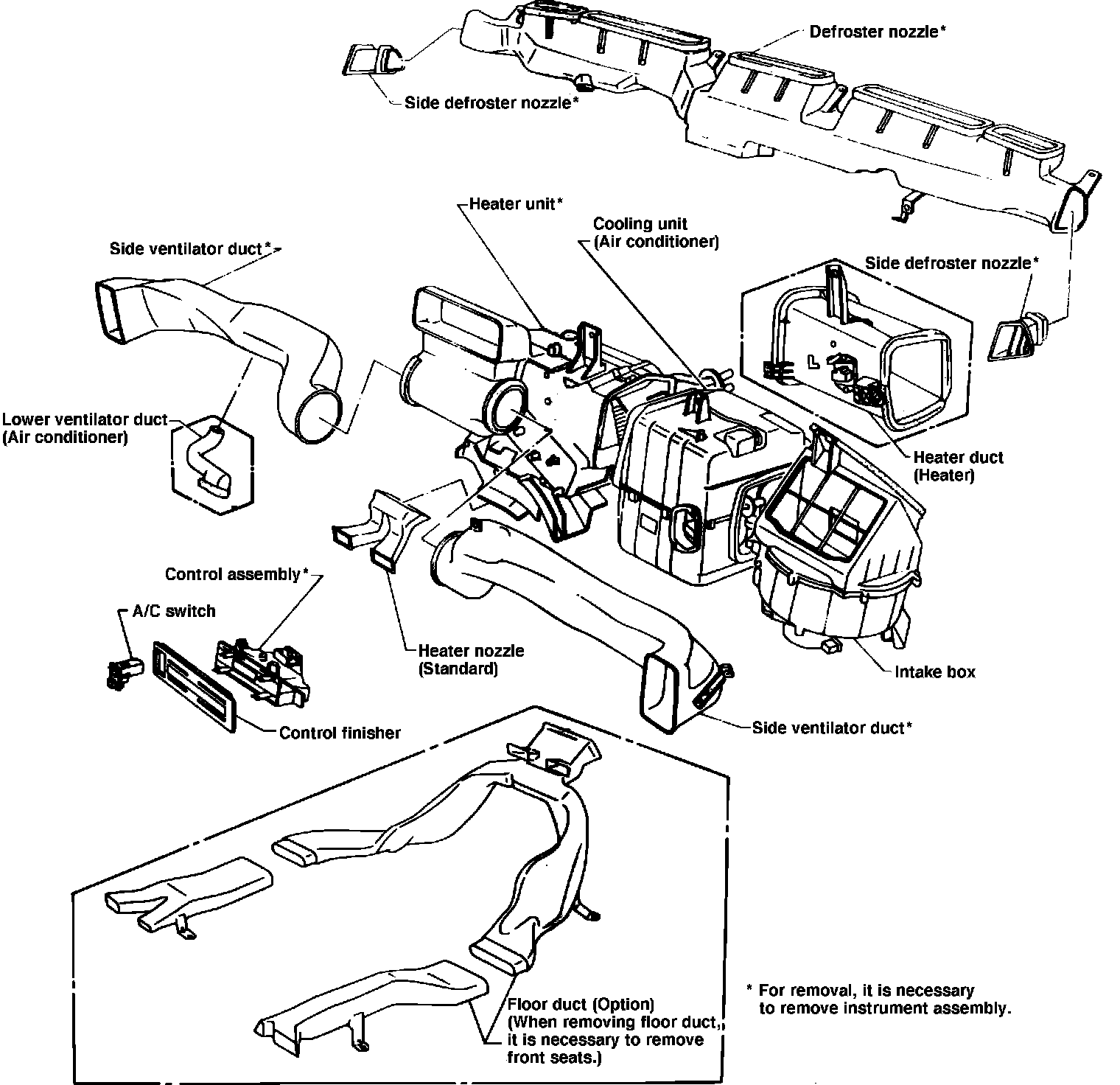 Fig. 30 Exploded view of heater system. 1987 Stanza exc. Wagon: