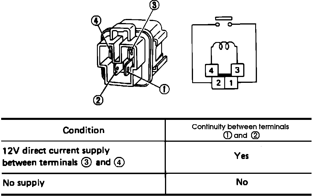 Apply voltage to the relay and check continuity as shown.