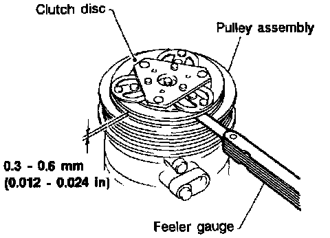 ^ Check clearance around the entire periphery of clutch disc. Disc-to-pulley clearance: 0.3 - 0.6 mm (0.012 - 0.024 in)