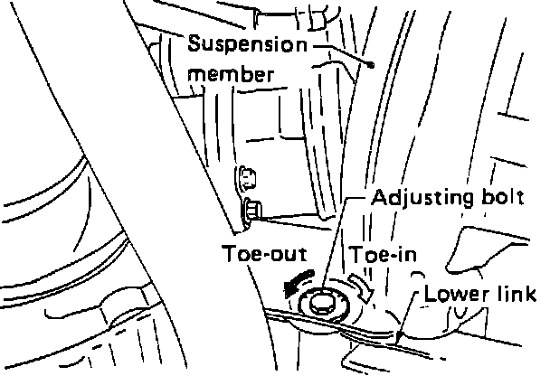 Rear toe-in can be adjusted by adjusting power cylinder lower links.
