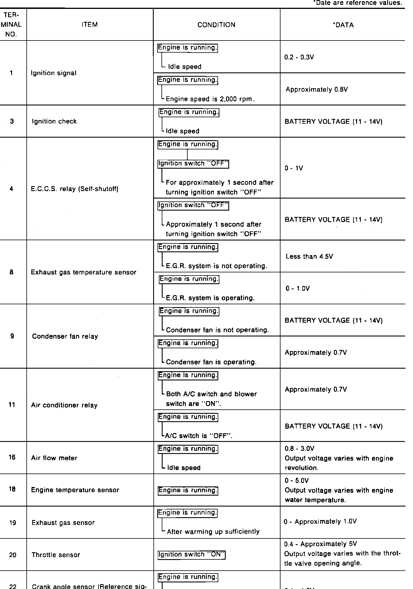 ECU PIN VOLTAGES