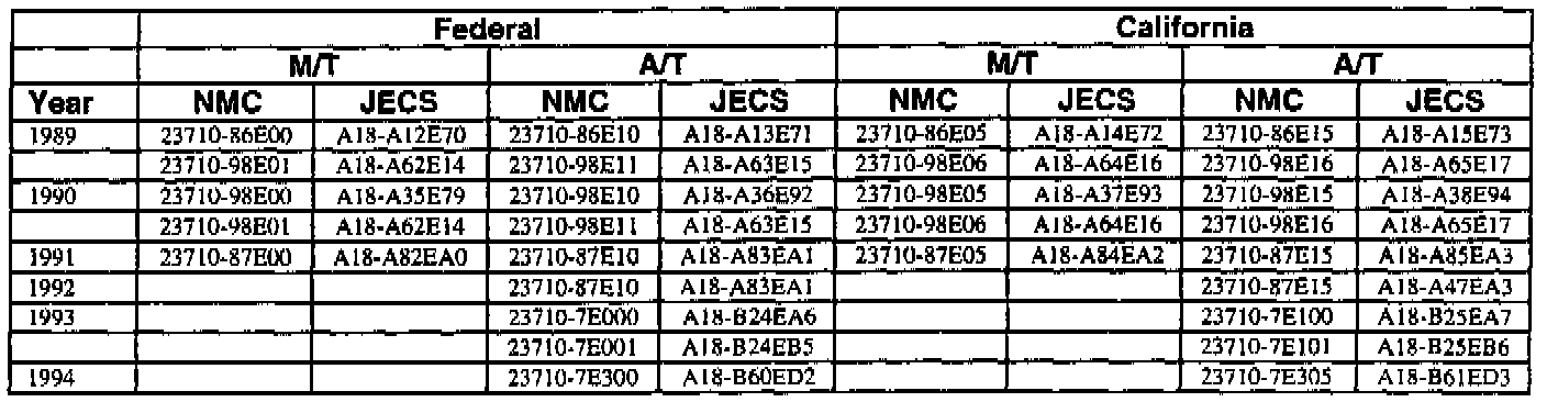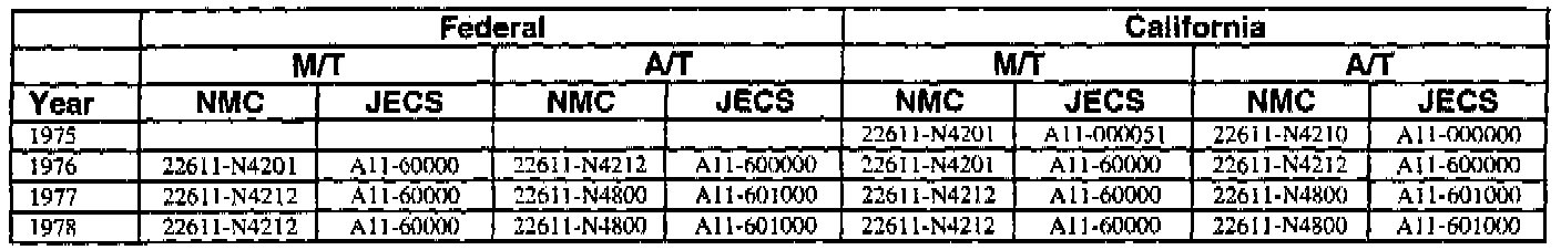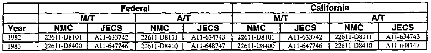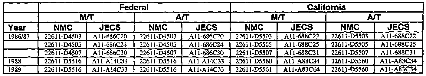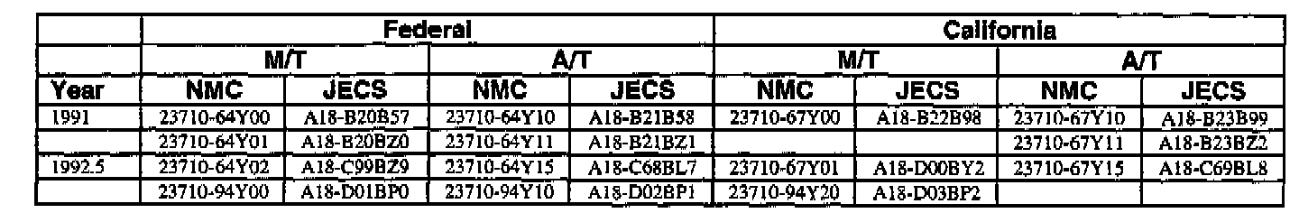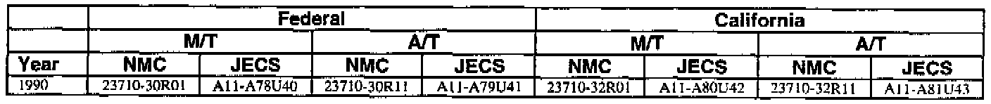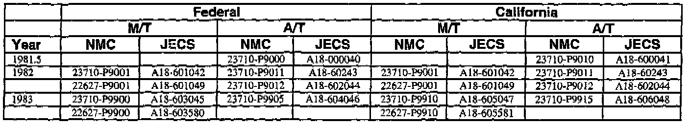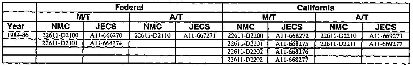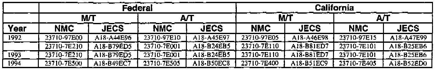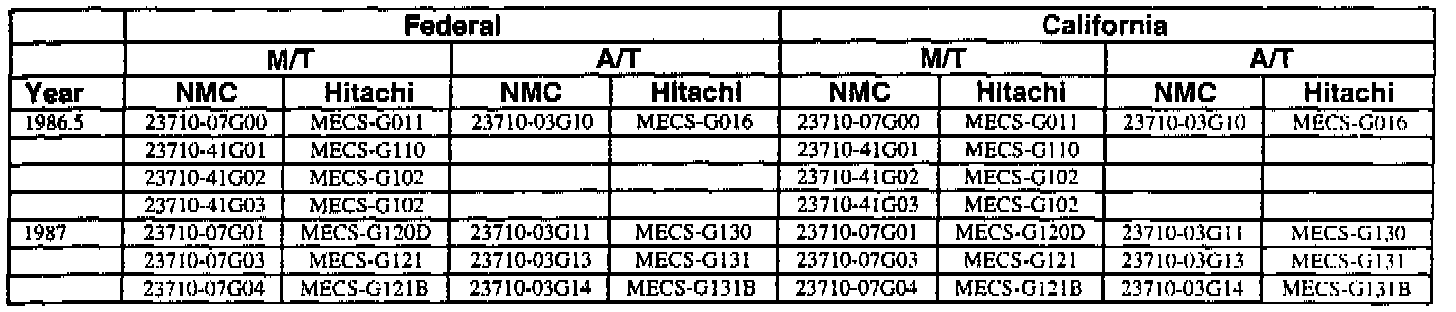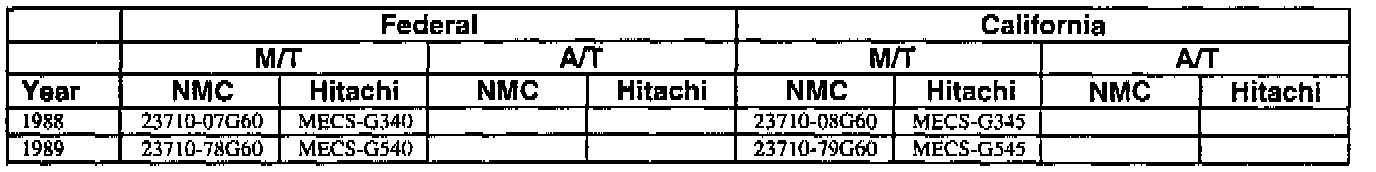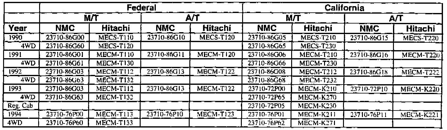 This bulletin contains a chart that lists the ECM Vendor serial number and cross-references to a Nissan part number. This chart is intended to be used as a reference guide to assure in verifying that a vehicle has the correct ECM installed in it. The parts catalog along with the VIN number and Date of Manufacture should be used to determine the correct part number when ordering a new ECM.