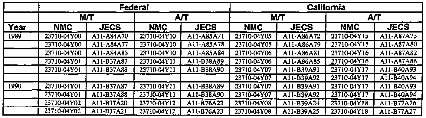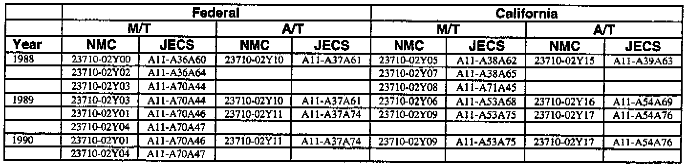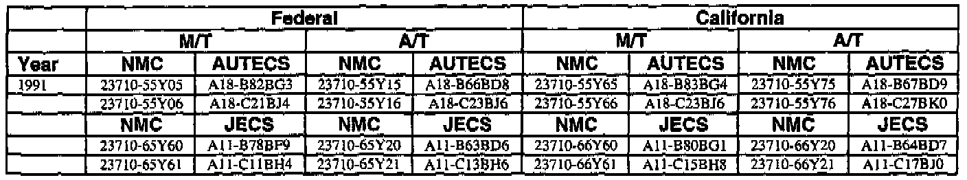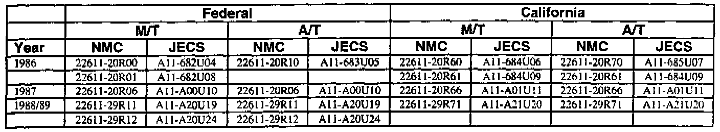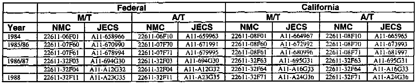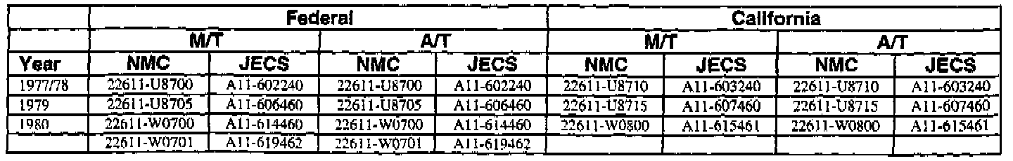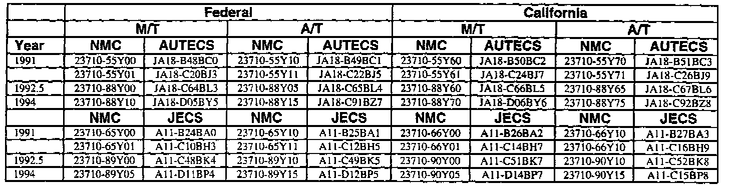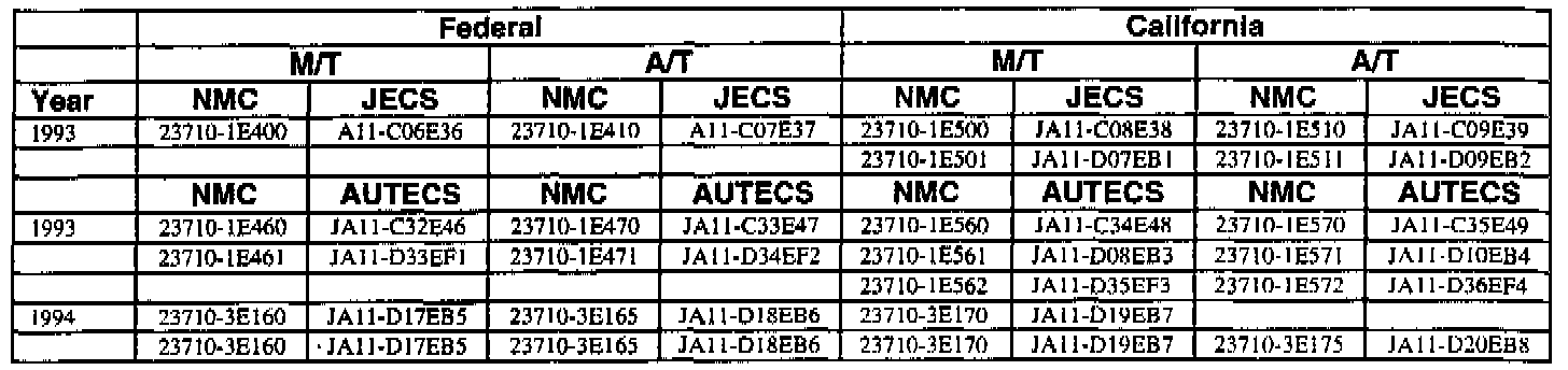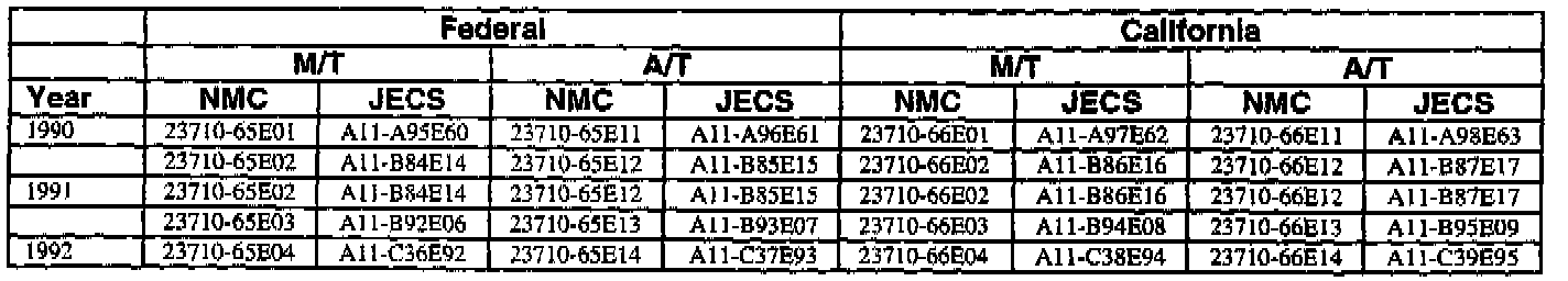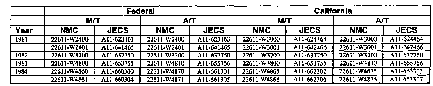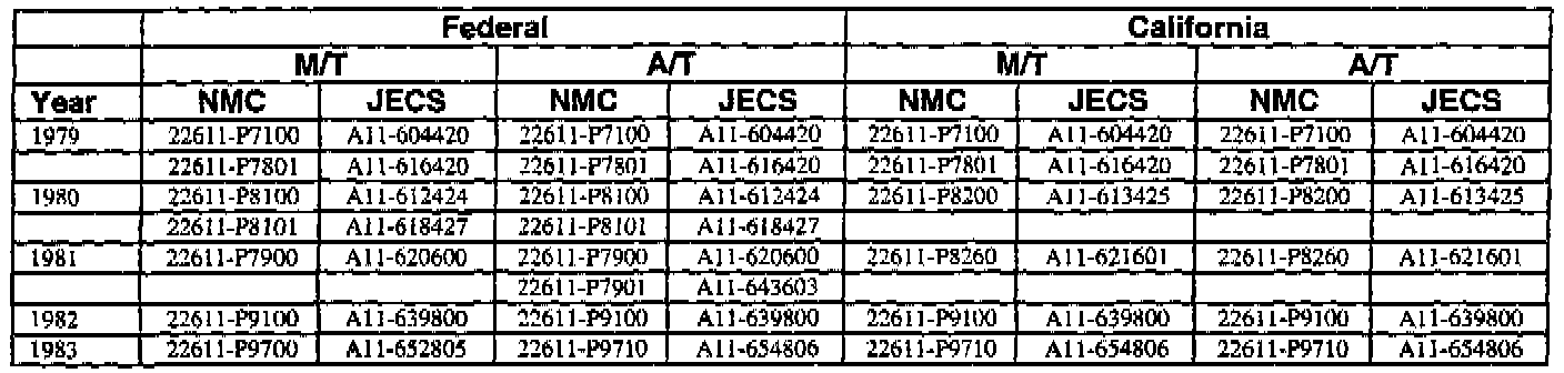 This bulletin contains a chart that lists the ECM Vendor serial number and cross-references to a Nissan part number. This chart is intended to be used as a reference guide to assure in verifying that a vehicle has the correct ECM installed in it. The parts catalog along with the VIN number and Date of Manufacture should be used to determine the correct part number when ordering a new ECM.