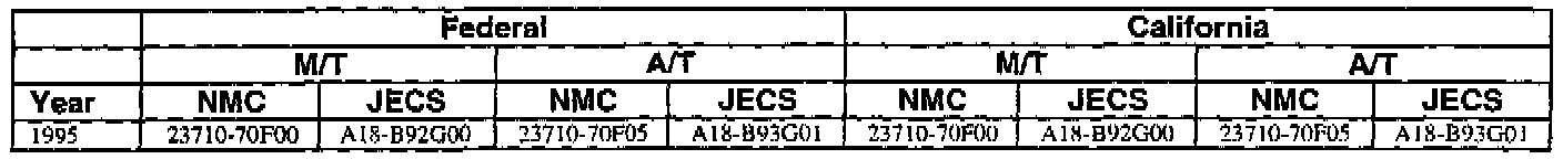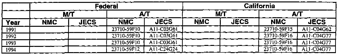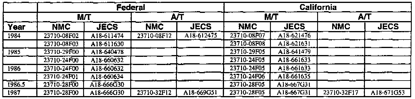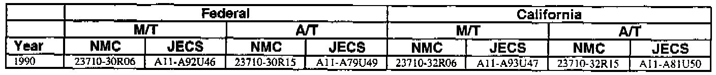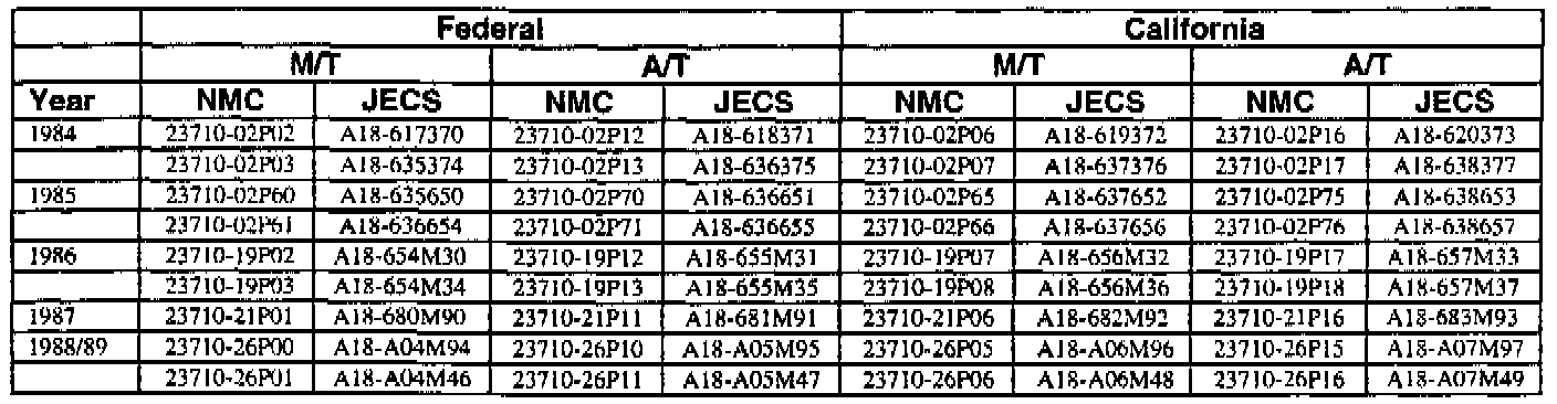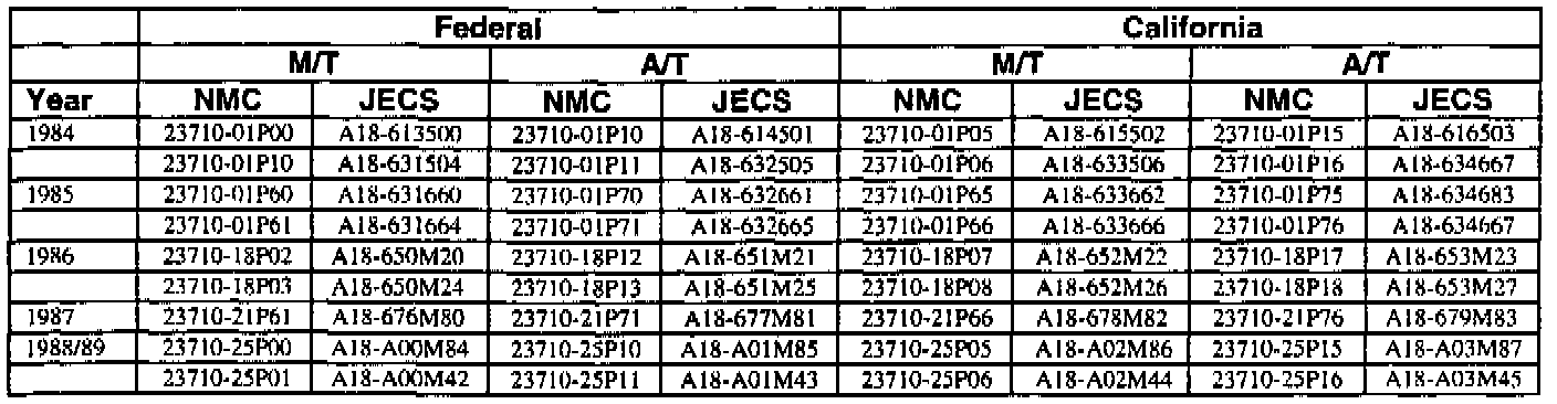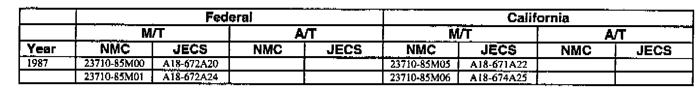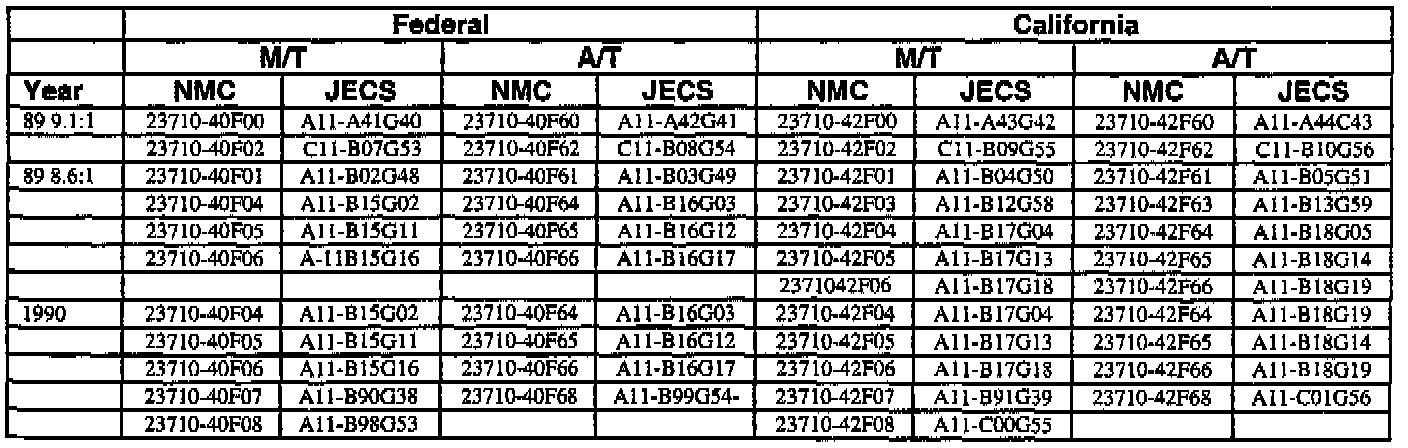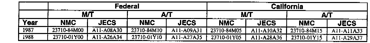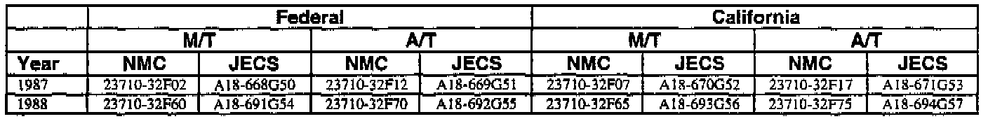 An ECM with a part number with 2371M-*****RE is a replacement ECM and has the same programming as the original. If a vehicle has an ECM with a part number containing "M" and "RE", disregard the "M" and "RE" when using this chart.