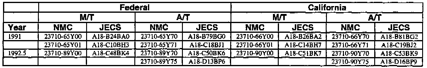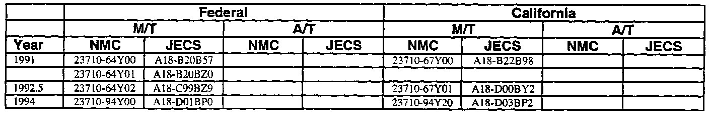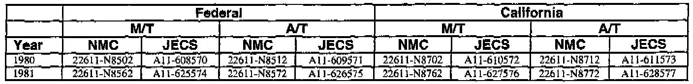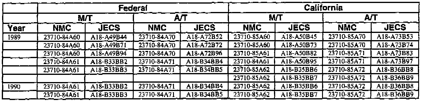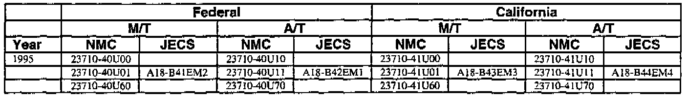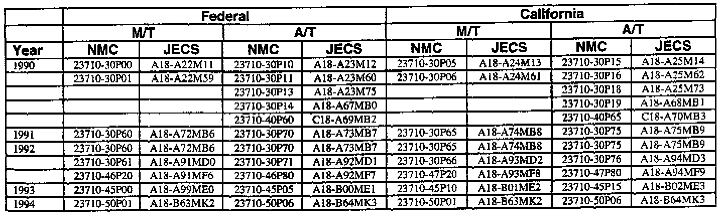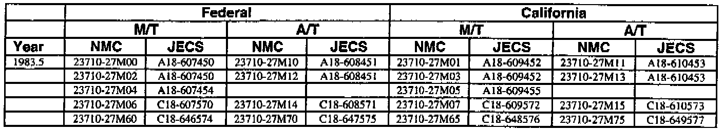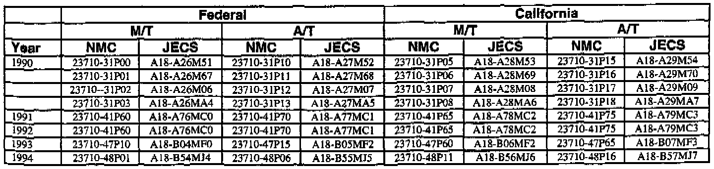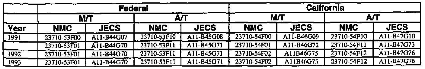 An ECM with a part number with 2371M-*****RE is a replacement ECM and has the same programming as the original. If a vehicle has an ECM with a part number containing "M" and "RE", disregard the "M" and "RE" when using this chart.
