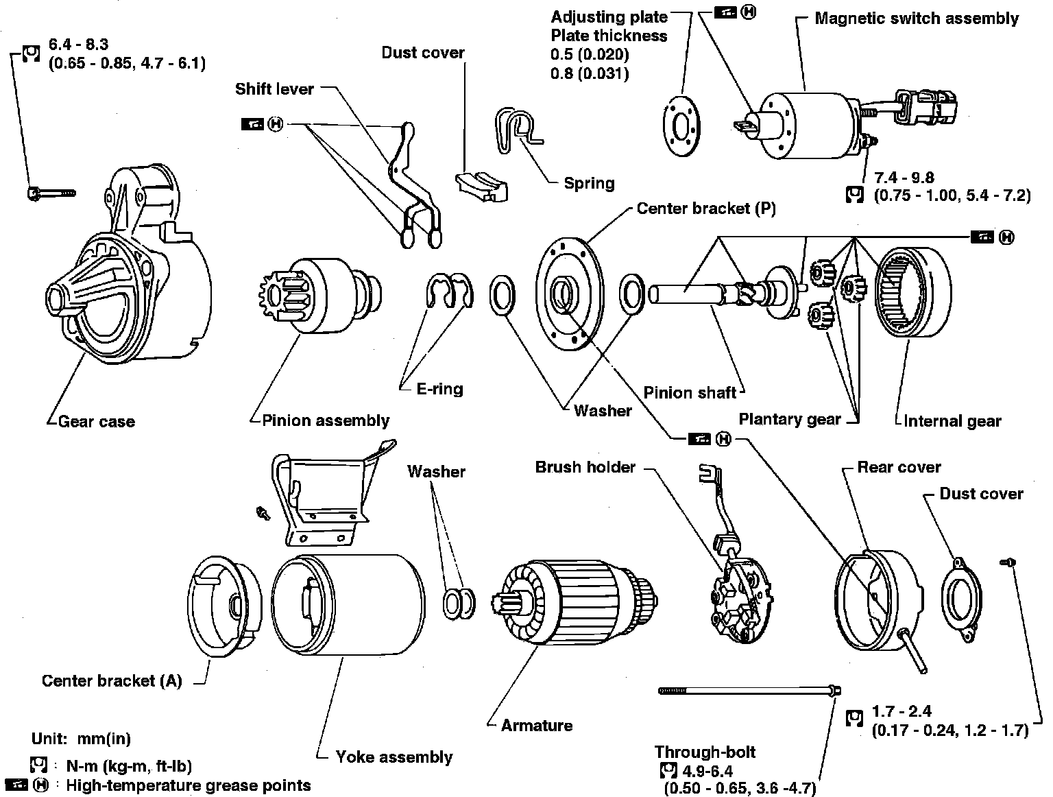 Nissan starters are of two types, direct drive and gear reduction. The direct drive starter Fig. 1 is equipped with an overrunning clutch type starter drive. A solenoid switch is mounted on the starter motor.