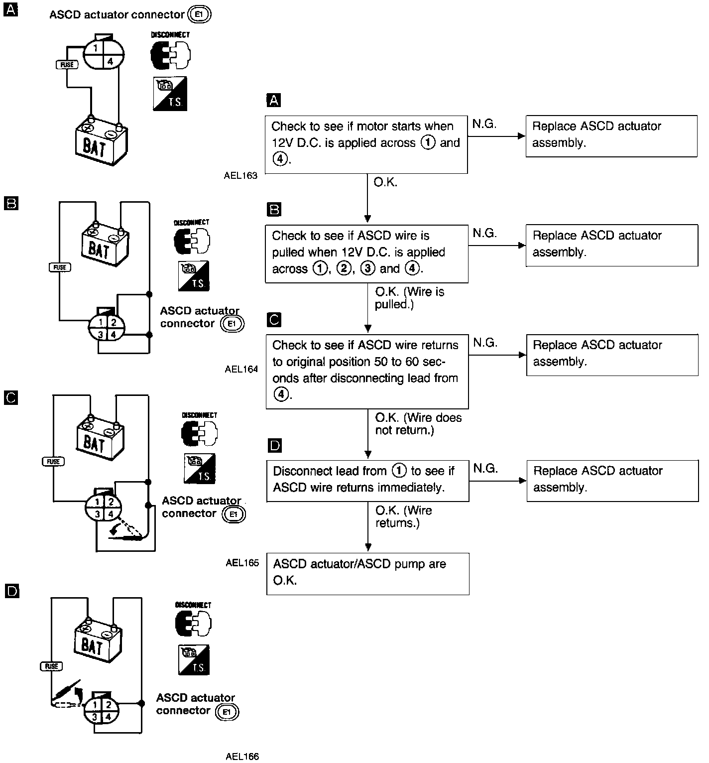 Check ASCD actuator/ASCD pump operations as shown.