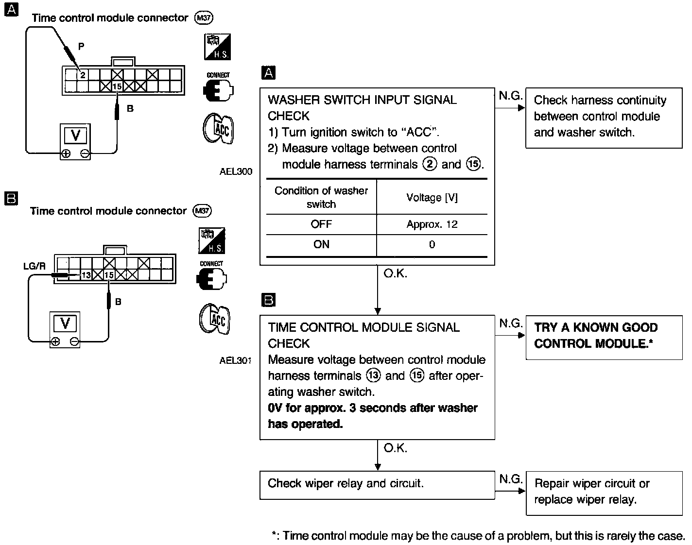 SYMPTOM: Wiper and washer activate individually but not in combination.