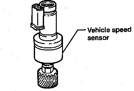 The vehicle speed sensor, located in the speedometer drive gear, is a magnetic reed switch that rotates in conjunction with the transmission output shaft. It sends the ECM on/off signals. The ECM interprets the speed at which the on/off signals occur into vehicle speed.