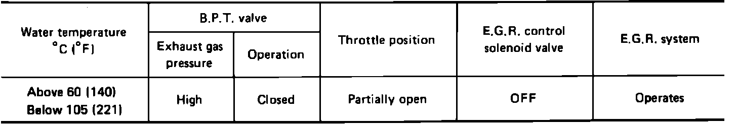 Vacuum is allowed to the EGR valve on acceleration and shut OFF upon deceleration or idling. The diaphragm mounted in the BPT valve raises in relation to exhaust pressure, opening an orifice allowing vacuum to be applied to the EGR Valve in response to the throttle opening.
