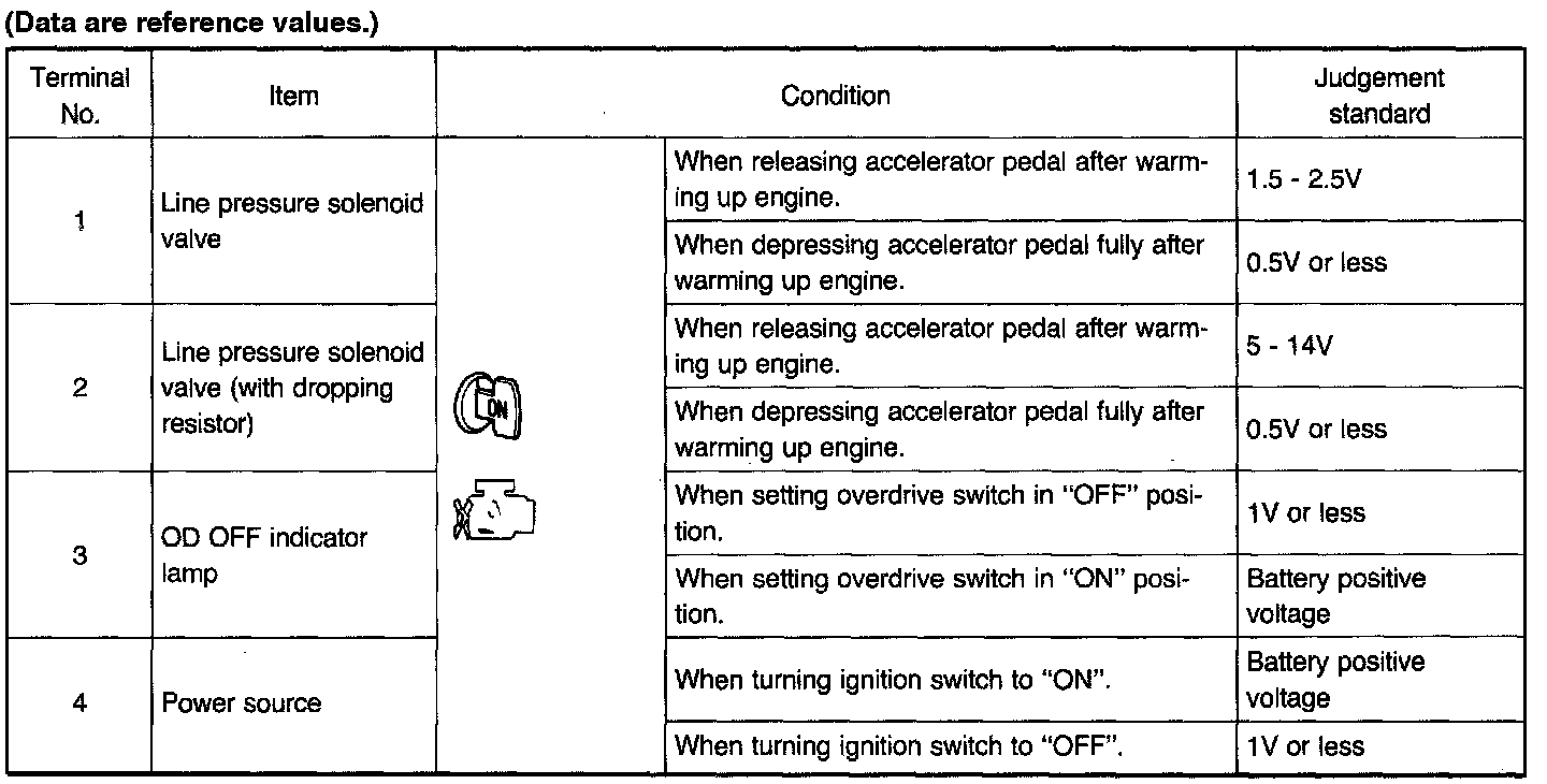 A/T Control Unit Inspection Table