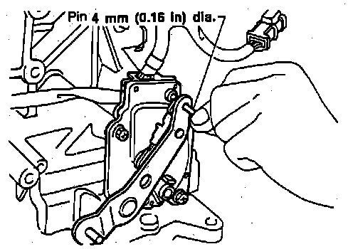 4. Insert suitable pin into adjustment holes in both inhibitor switch and switch lever as near vertical as possible, Fig. 5.
