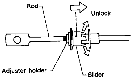 2. Unlock slider from adjuster holder and remove rod from cable.