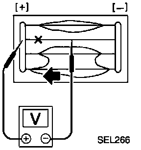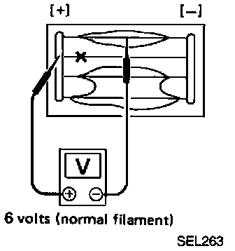 1. Attach probe circuit tester (in volt range) to middle portion of each filament.