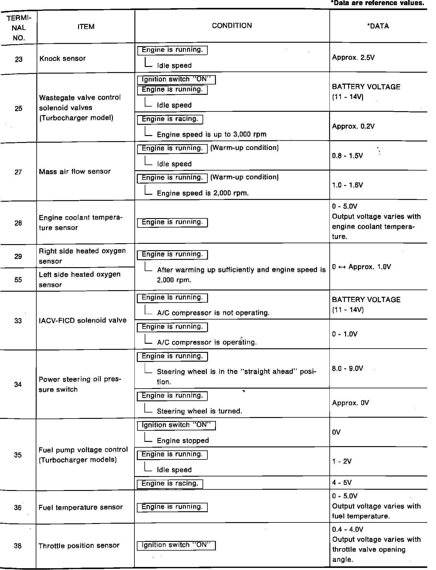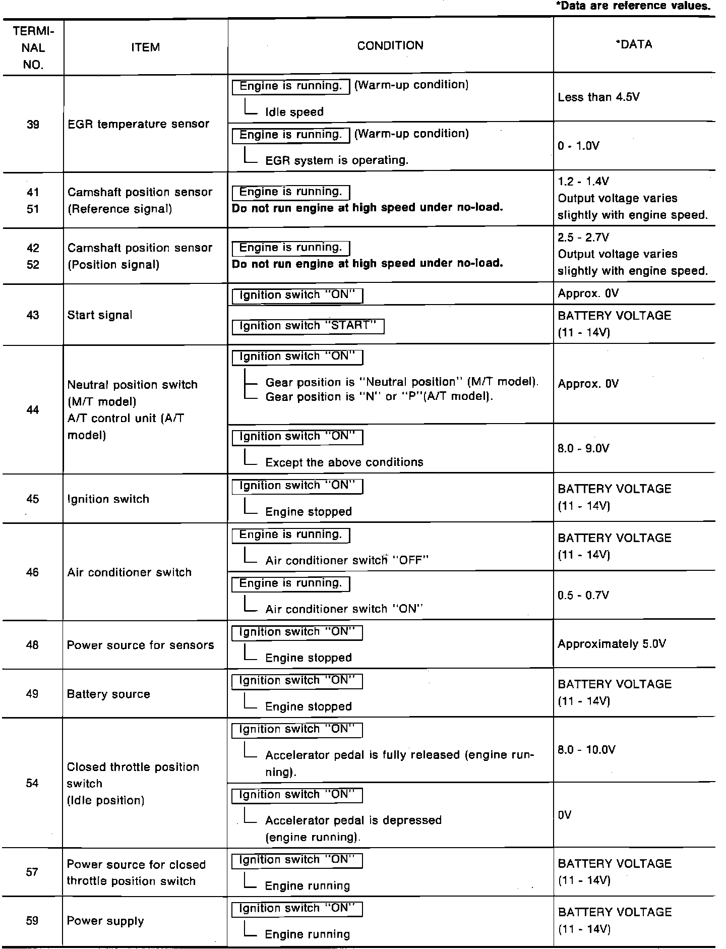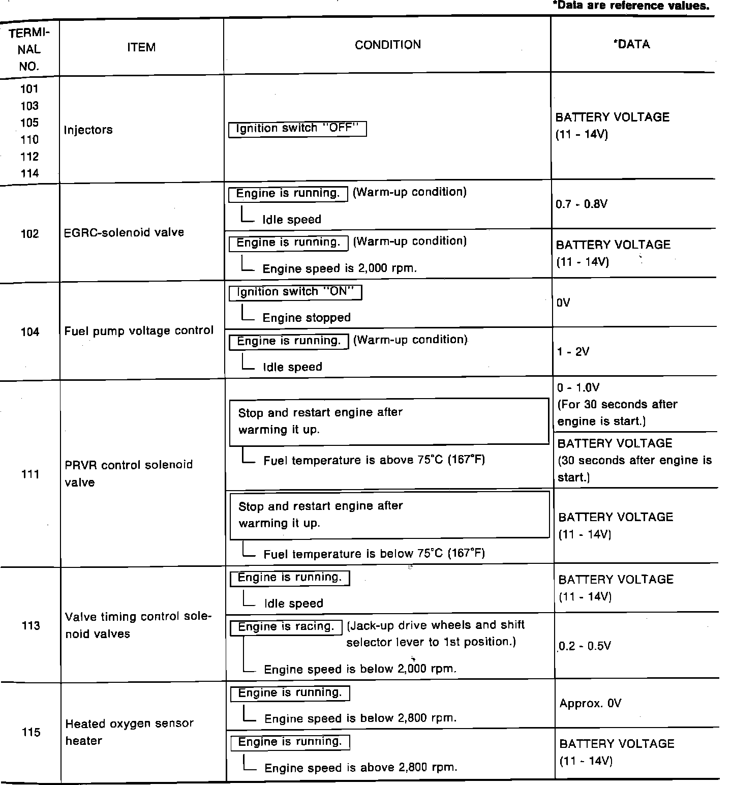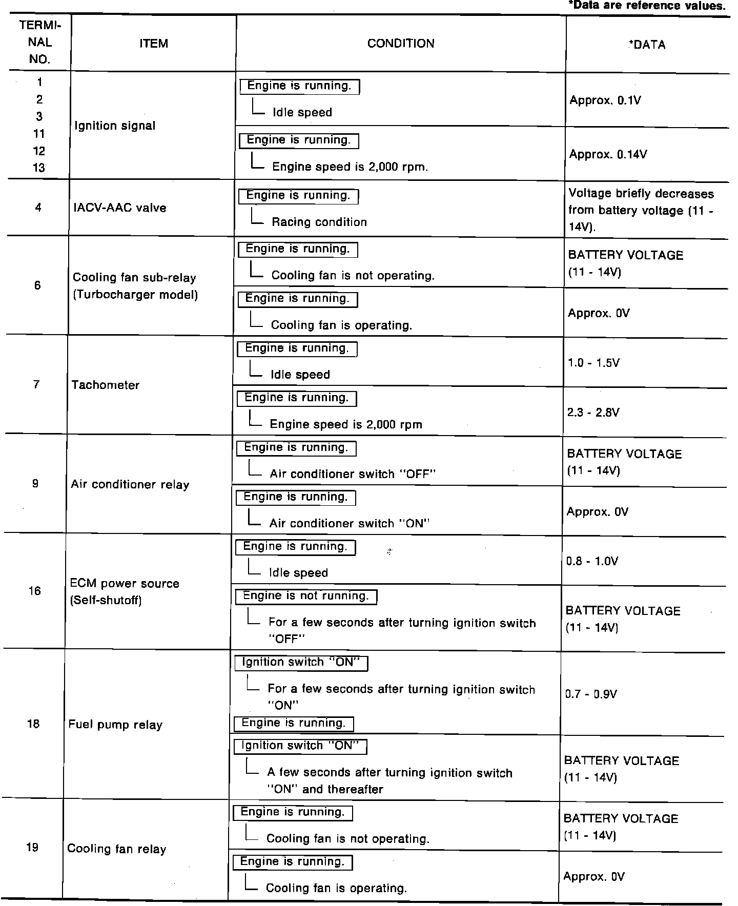 ECM Terminal Voltage Table: