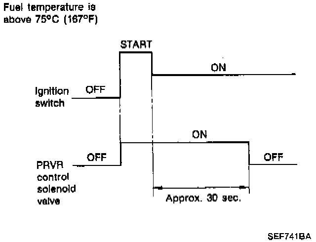 The fuel "pressure-up" control system briefly increases fuel pressure for improved starting performance of a hot engine. Under normal operating conditions, manifold vacuum is applied to the fuel pressure regulator. When starting the engine, however, the Engine Control Module allows current to flow through the ON/OFF solenoid valve in the control vacuum line, opening this line to the atmosphere. As a result, atmospheric pressure is applied, restricting the fuel return line so as to increase fuel pressure.