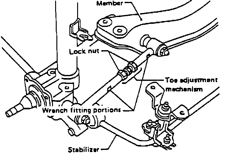 2. Loosen locknuts and adjust parallel link length to obtain specified toe-in, noting the following: