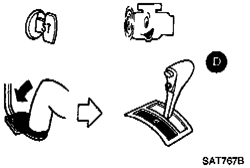2. Start engine, apply foot brake, place selector lever in "D" position and wait a few minutes.