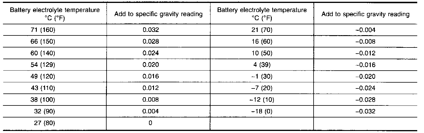 Use the chart to correct your hydrometer reading according to electrolyte temperature.