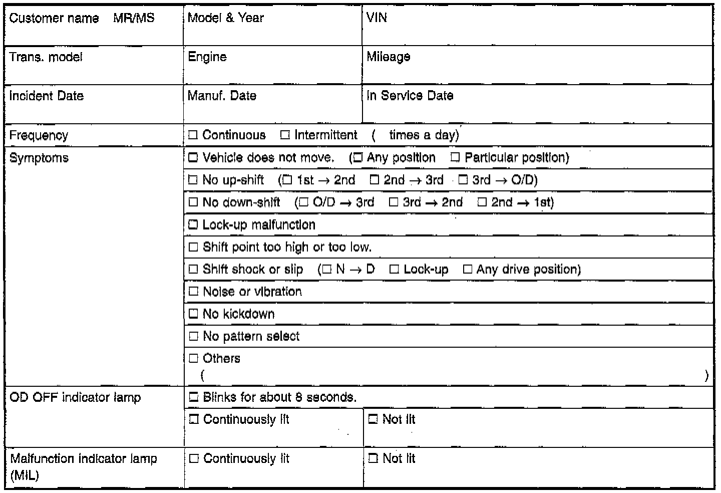 HOW TO PERFORM TROUBLE DIAGNOSES FOR QUICK AND ACCURATE REPAIRA good understanding of the malfunction conditions can make troubleshooting faster and more accurate. In general, each customer feels differently about a problem. It is important to fully understand the symptoms or conditions for a customer complaint.