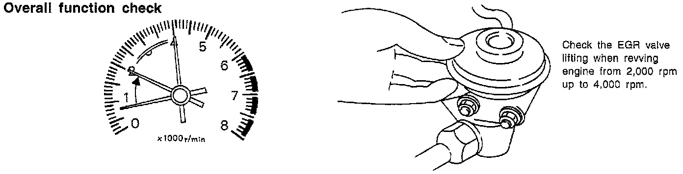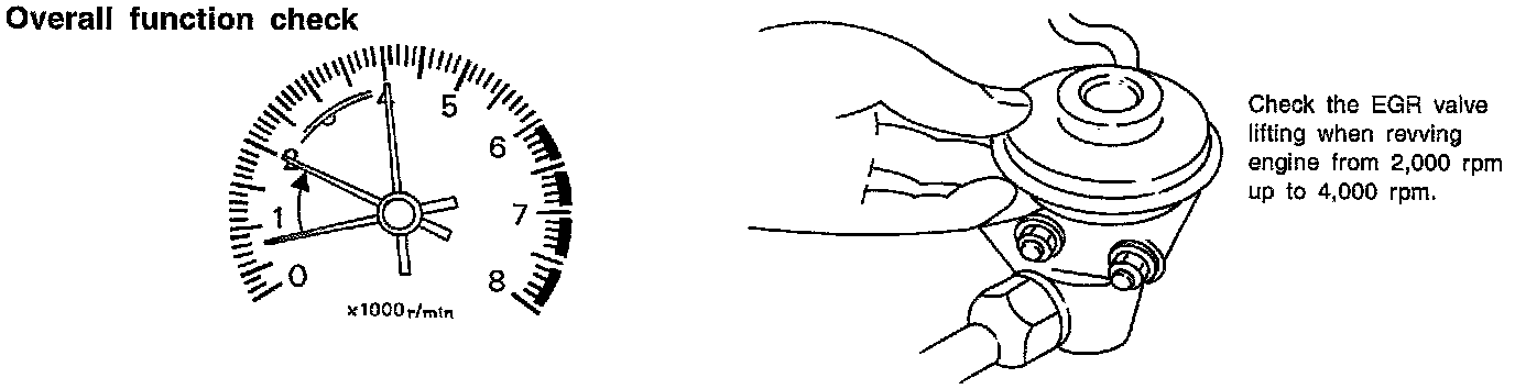 (2) Check for the EGR valve lifting when revving from 2,000 rpm up to 4,000 rpm under no load.