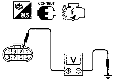(4) Check voltage between EGR temperature sensor sub-harness connector terminal (2) and ground at idle speed.