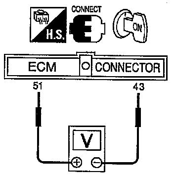 (1) Confirm the voltage between ECM terminals (51) and (43) is higher than 2.08V. Perform the following steps before the voltage becomes lower than 2.08V.