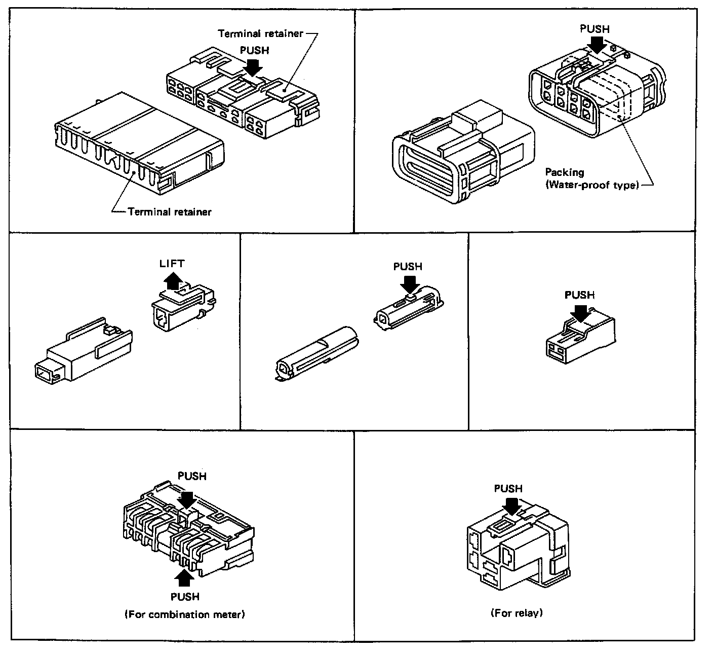 ^ All harness connectors have been modified to prevent accidental looseness or disconnection.
