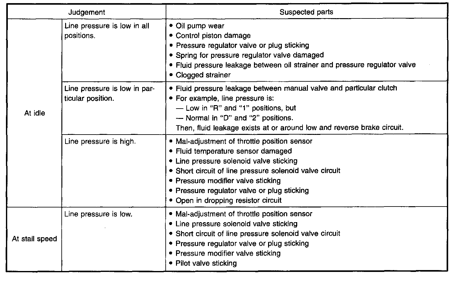 - When measuring line pressure at stall speed, follow the stall test procedure.