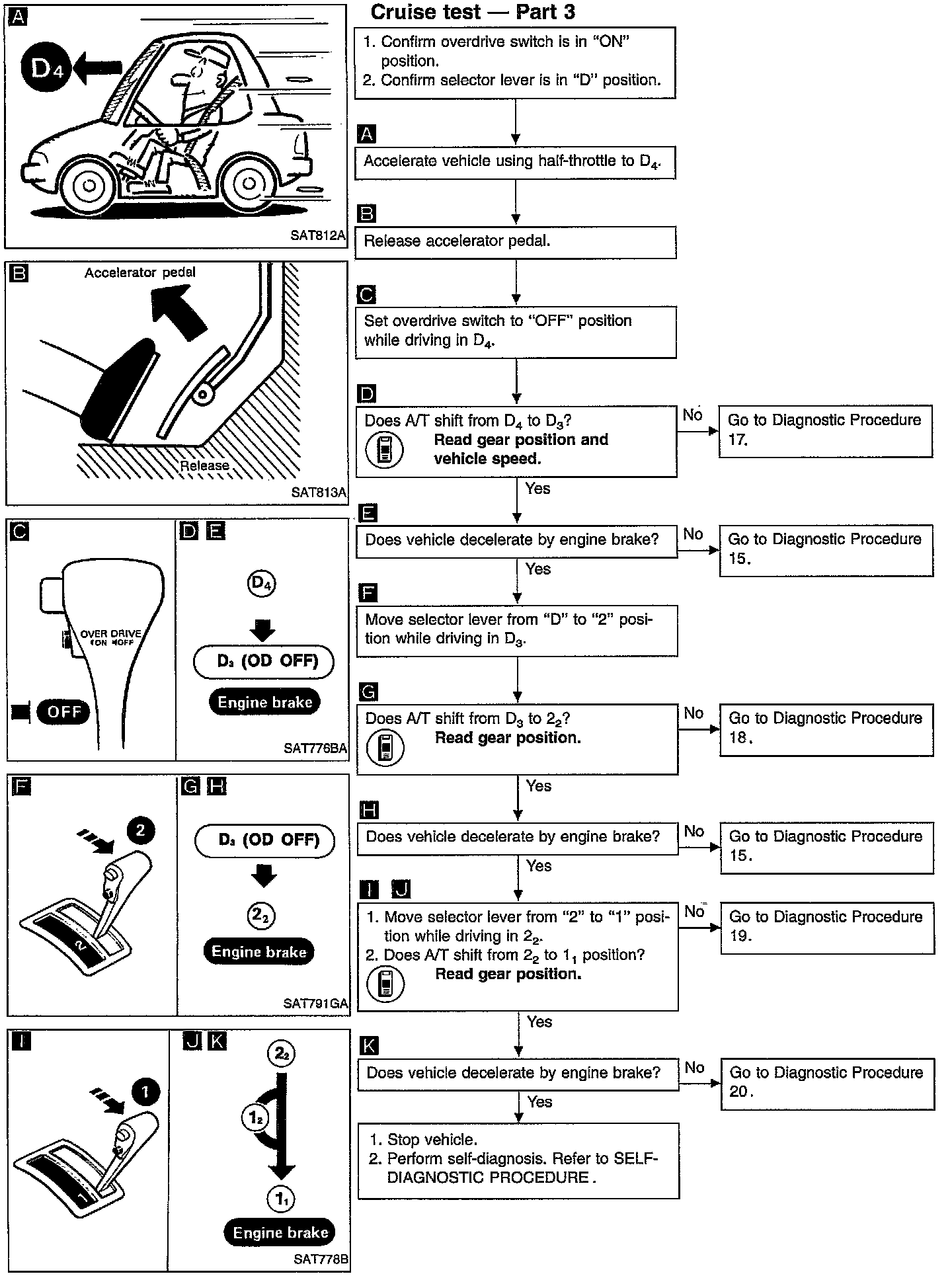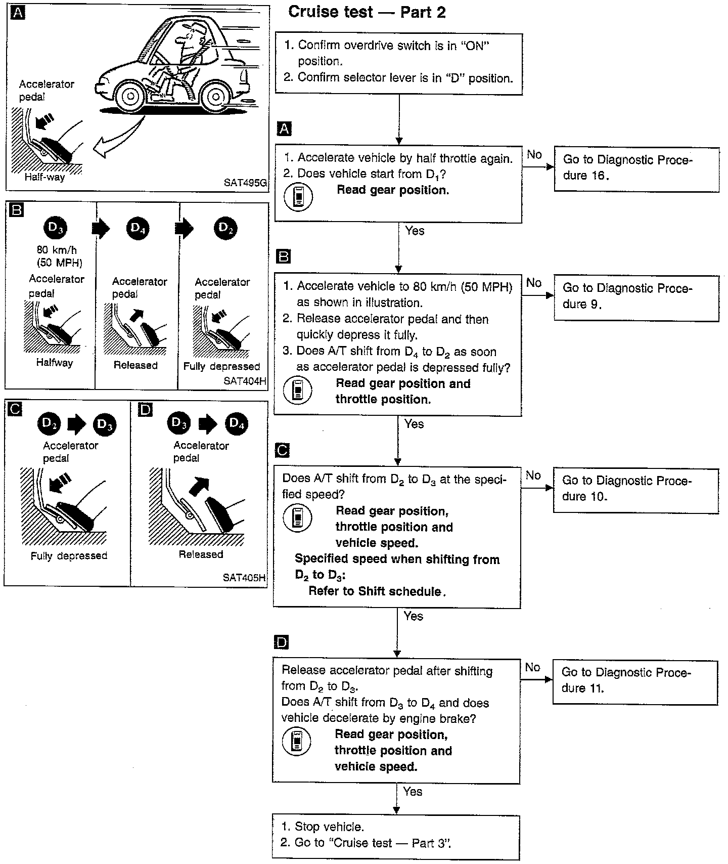 - Conduct tests on all items until specified symptom is found. Troubleshoot items which check out No Good after road test. Refer to "How to Display and Read Diagnostic Trouble Codes".