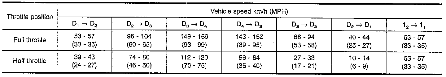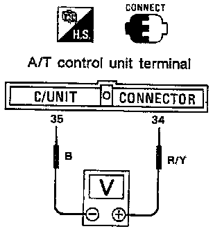 - Throttle position can be checked by voltage across terminals (34) and (35) of A/T control unit.