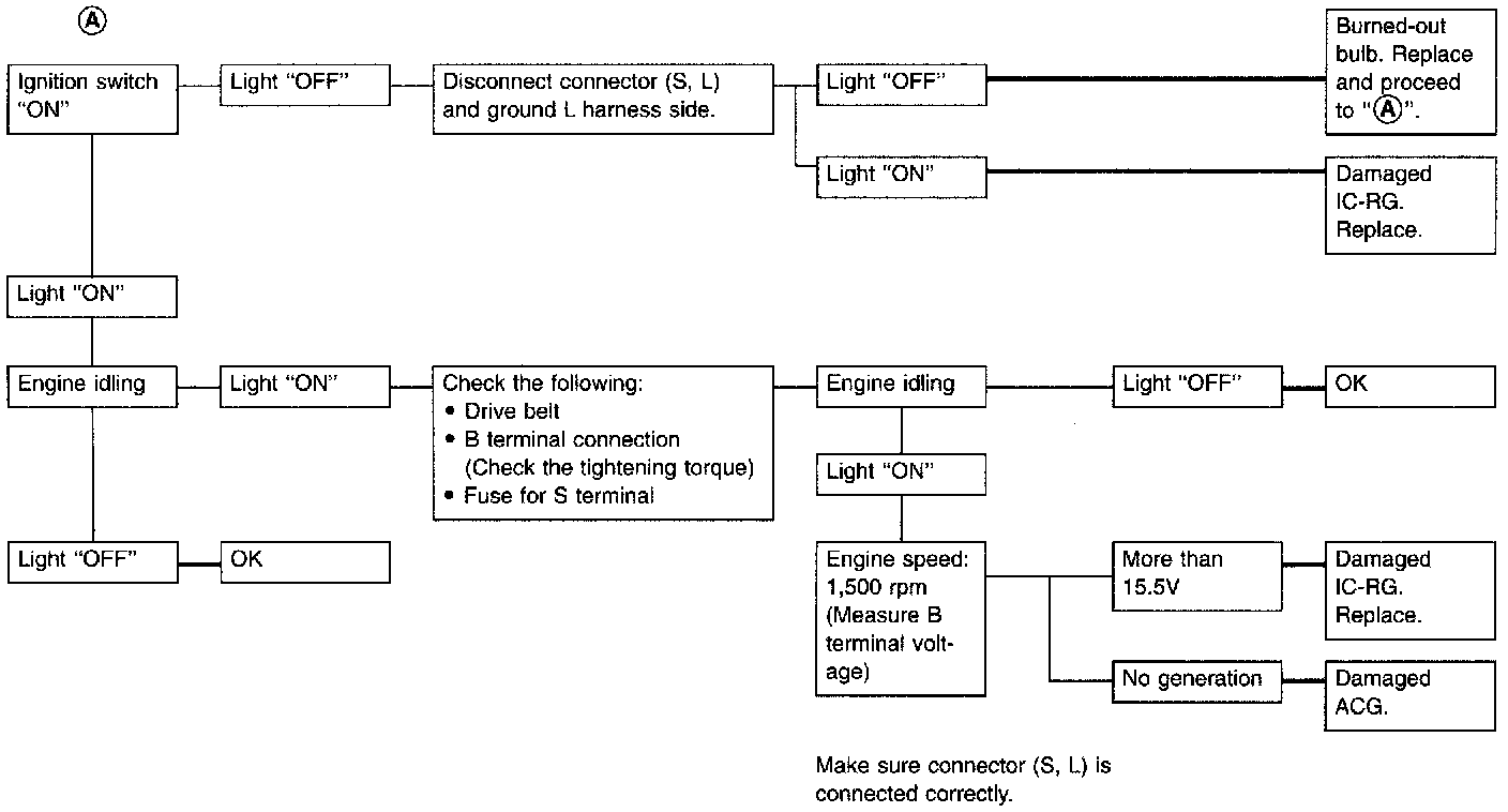 3. When reaching "Damaged ACG", remove generator from vehicle and disassemble, inspect and correct or replace faulty parts.
