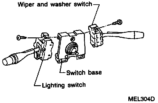 ^ To remove combination switch base, remove base attaching screw and turn after pushing on it.
