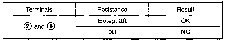 2. Check power transistor resistance between terminals (2) and (8).