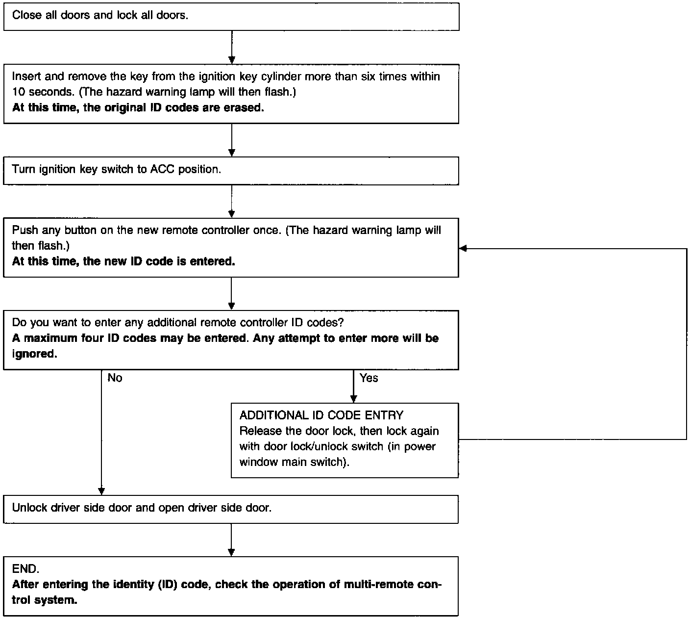 If you need to activate more than two additional new remote controllers, repeat the procedure "Additional ID code entry" for each new remote controller.