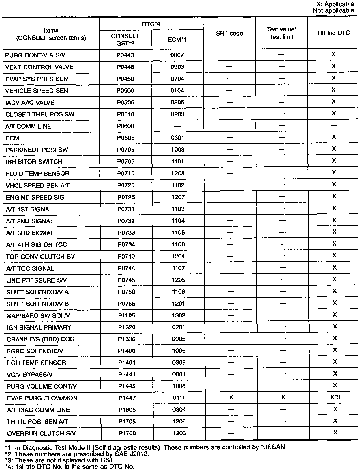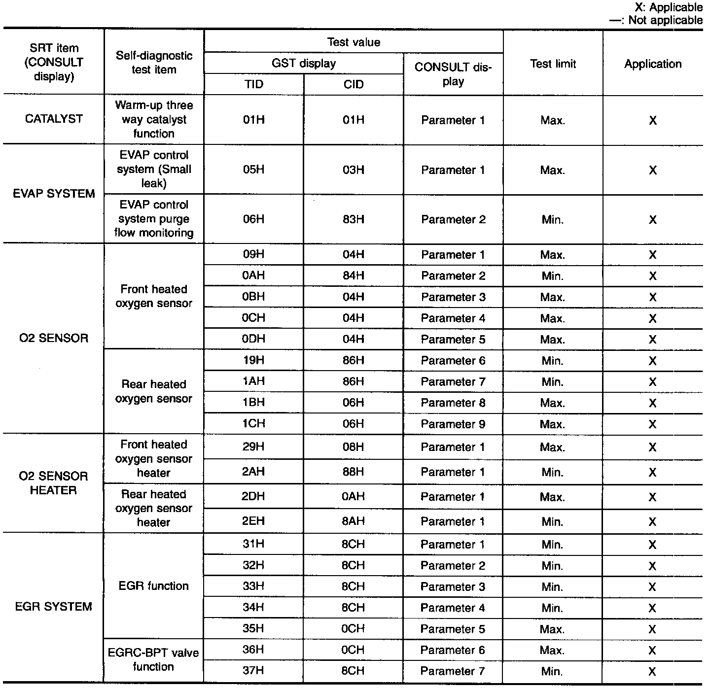 TEST VALUE AND TEST LIMITThe following is the information specified in Mode 6 of SAE J 1979.