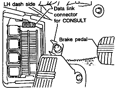1. Turn off ignition switch.2. Connect "CONSULT" to data link connector for CONSULT. (Data link connector for CONSULT is located behind the fuse box cover.)