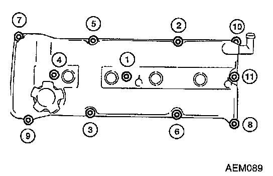b. Tighten nuts (1) through (11) in numerical order to 8 - 11 Nm (69 - 95 inch lbs.).