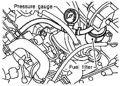 3. Install pressure gauge between fuel filter and fuel tube.