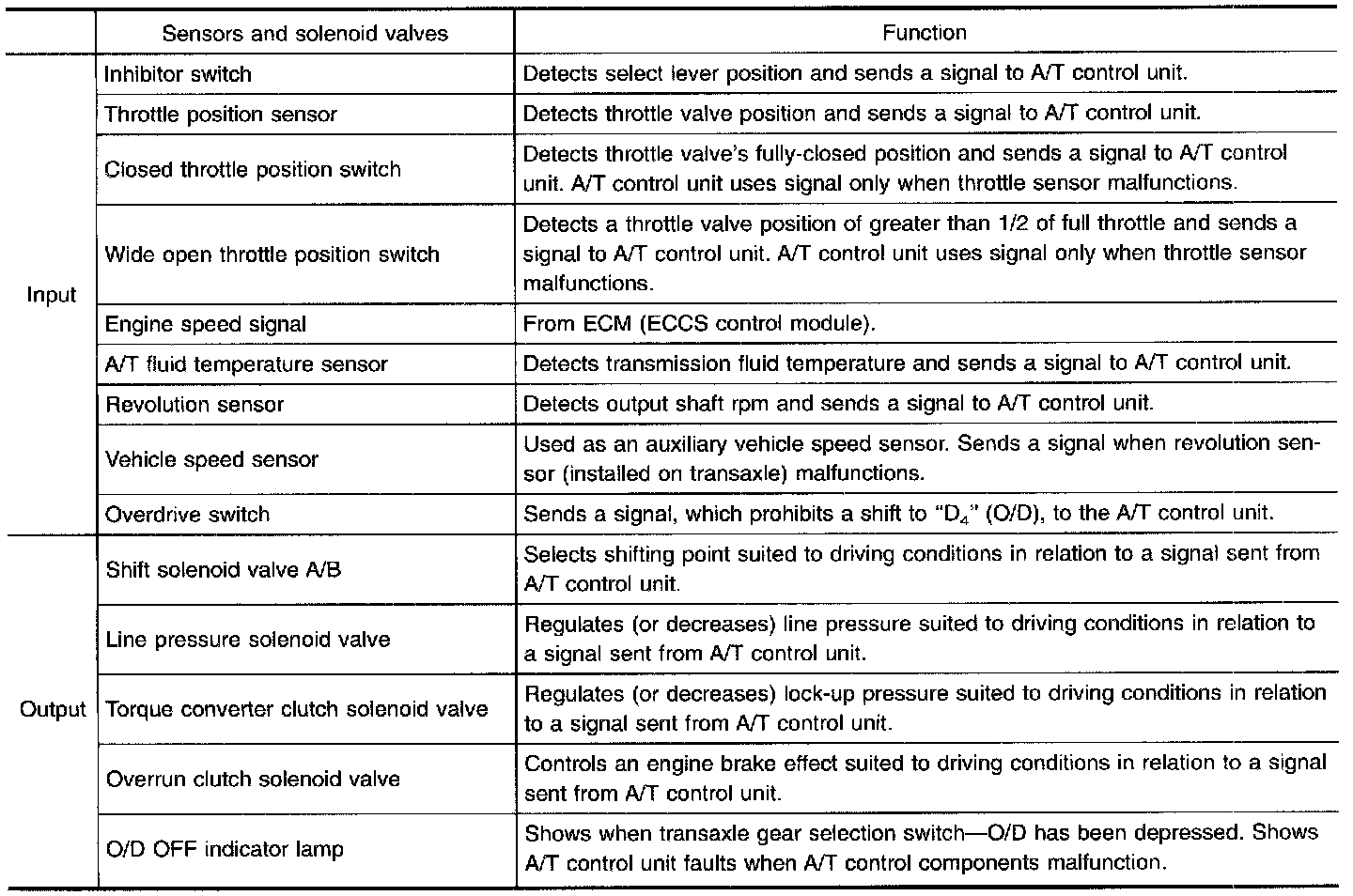 INPUT/OUTPUT SIGNAL OF A/T CONTROL UNIT