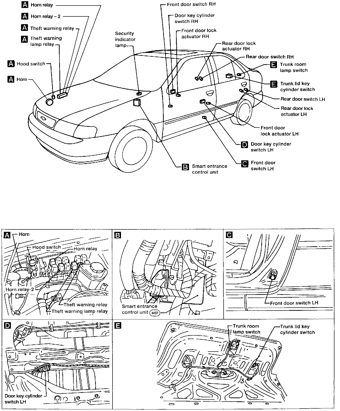 Theft Warning System Component Parts and Harness Connector Location