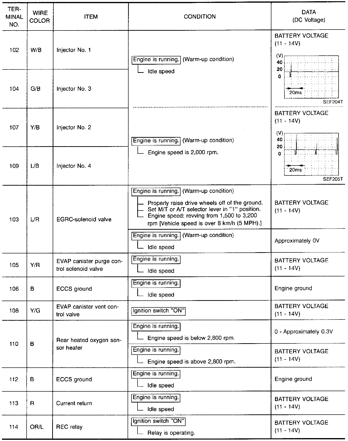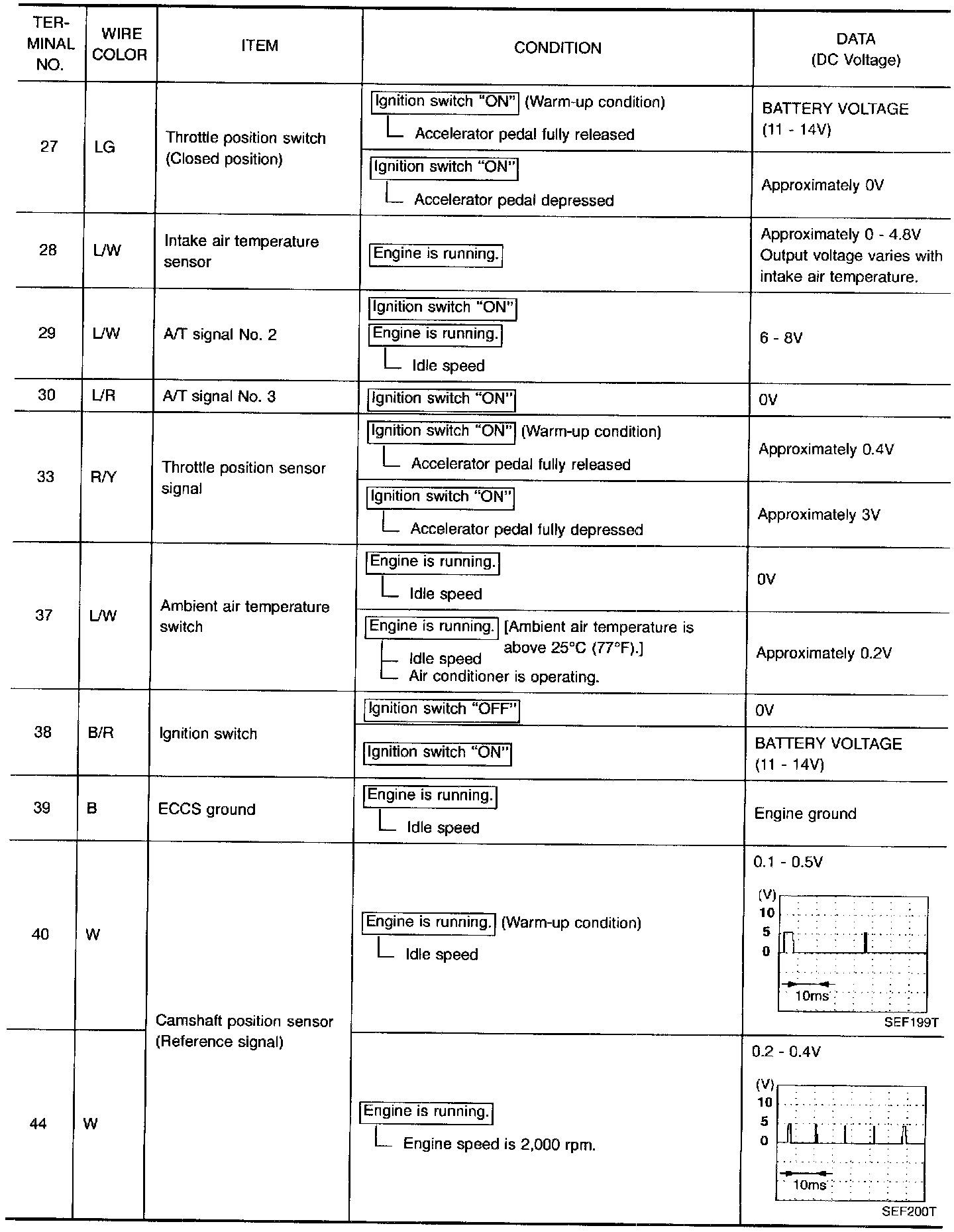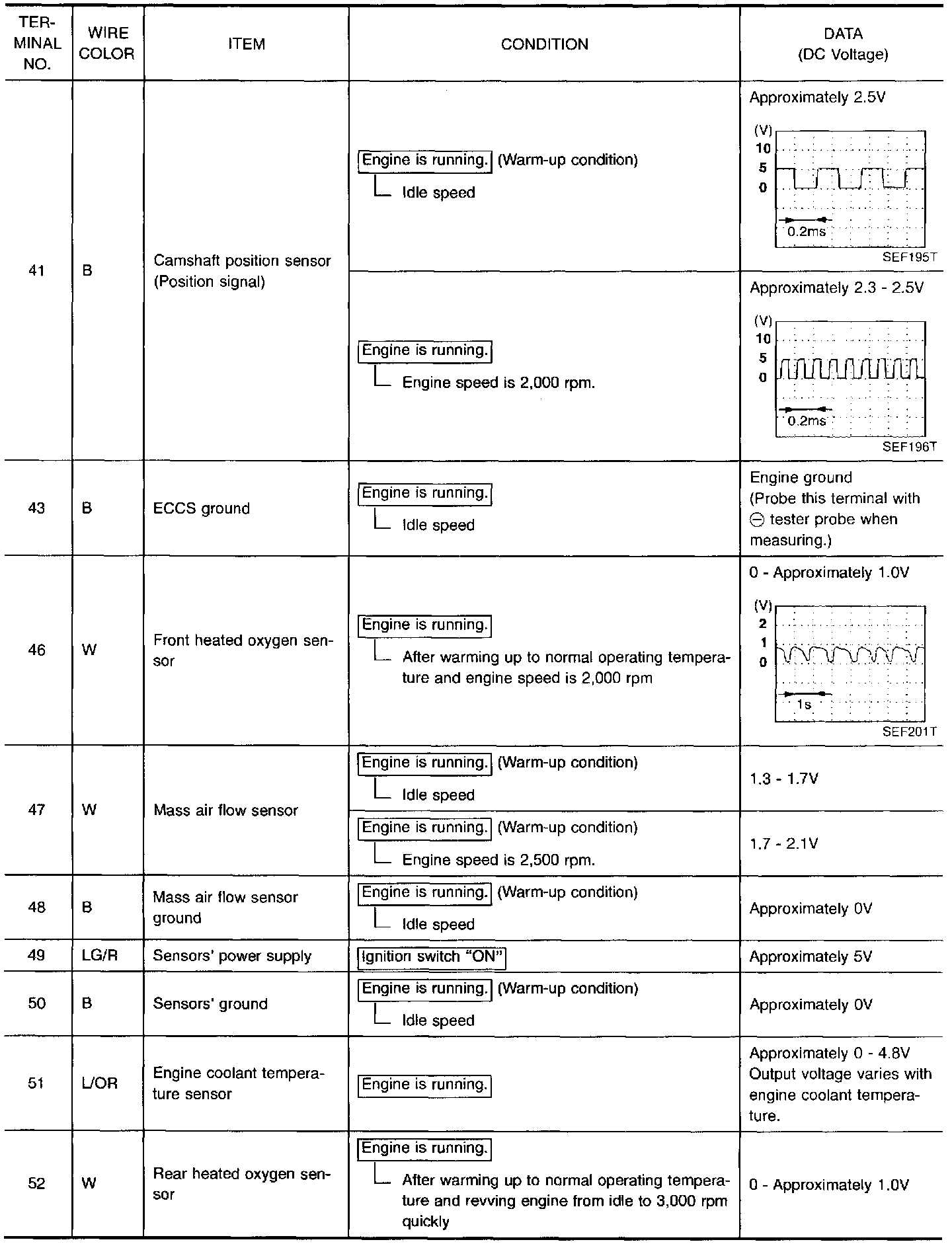 Specification data are reference values and are measured between each terminal and (43) (ECCS ground).