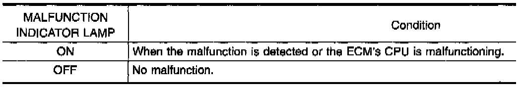 In this mode, the MALFUNCTION INDICATOR LAMP on the instrument panel should stay ON. If it remains OFF, check the bulb.